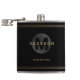 The flask itself is fine. It’s a cheap flask, obviously bought in bulk, however am prepared to overlook that. Given that it is a personalized item, I would have liked to have seen gift boxing instead of the generic packaging. Terrible printing, and/or quality. It’s a cheap, tacky vinyl. It is not cut straight and is also applied in a way that it is overhanging the bottom, causing the glue to catch on items and it will eventually roll and tear, damaging the wrap.