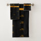 Stylish black with a faux gold frame. Personalise and add your monogram letters, initials as a married couple and name. Your family name's initial in the middle with a capital letter. His and hers. Golden coloured letters. The name is written with a modern hand lettered style script. The monogram as a background pattern. Perfect as a wedding gift or as a gift for the newly weds.