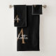 Black Gold Monogram Elegant Girly Script Bath Towel Set