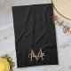 Black Gold Monogram Elegant Girly Script Tea Towel