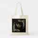 Elegant watercolor greenery leaves floral monogram name tote bag featuring a gold monogram initial on a black background with your name set in a stylish white script. Designed by Thisisnotme©