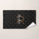 Black gold monogram initials name script elegant hand towel