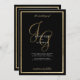 An elegant trendy gold monogram initials stylish minimalist black and gold romantic wedding invitations.