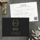 Create a refined and elegant wedding stationery suite with this gold botanical wreath RSVP card, featuring a delicate hand-drawn oval leaf design framing your custom monogram initials. Set against a striking black background with gold and white accents, this design offers a timeless, modern look perfect for formal, classic, or minimalist weddings. Easily personalize with your names, RSVP details, meal selections, and QR code for a seamless guest response experience. The simple yet sophisticated leaf wreath adds a natural botanical touch while maintaining a clean and luxurious aesthetic. Ideal for black tie weddings, evening celebrations, or couples seeking elegant monochrome and gold styling, this RSVP card pairs beautifully with matching invitations and coordinating items available in the collection.. © Original leaf drawing and design by Sarah Trett for www.mylittleedenweddings.com on Zazzle.