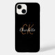 A classic black background. Personalise and add a name and monogram initials. The name is written with a modern hand lettered style script. White and golden letters.