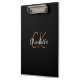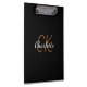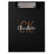 A classic black background. Personalise and add a name and monogram initials. The name is written with a modern hand lettered style script. White and golden letters.