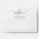 A minimalist gold and black monogram stylish return address envelope on a white background, contrasted with a serif typography name. Elegant style to dress up your correspondence or label your personal items.
