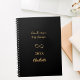 A black coloured background decorated with an infinity loop. The motivational quote: Small steps. Big change. Personalise and add your name and year.