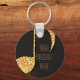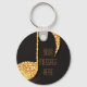 Black gold music notes monogram name key ring