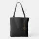 Black Gold Name White Girly Script Monogram Modern Tote Bag