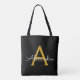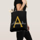 Black Gold Name White Girly Script Monogram Modern Tote Bag