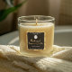 a luxury label for scented natural beeswax candles with a black background and gold border with space for your logo.