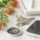 Elegant YOGA Meditation Instructor Keychain Template - Modern Simple Minimalist Faux Gold Foil Blind Embossed / Debossed OM Symbol on Black Paper.