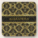 Black & Gold Ornate Baroque Design-Monogram Coaster