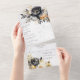 This All-in-One wedding invitation showcases the timeless beauty of black and gold peonies against a stunning grey marbled background. The intricate detailing and the luxurious colour palette create an atmosphere of grandeur and romance, making your wedding invitation a true work of art. The All-in-One wedding invitations are both beautiful and practical by combining the wedding invitation with an easy to remove perforated RSVP postcard. They are also quick and easy to prepare for mailing. Simply address the invitation, fold the back flap and seal with the included clear stickers. Once your guests receive the pre-addressed invitation they simply tear off the perforated RSVP card and drop it in the mail.