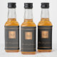 Luxury elegant black leather look (PRINTED) custom liquor mini bottle labels with a copper gold metallic glitter monogrammed square, horizontal lines, and personalised name signature script. +++++ You can find all bottle labels variants in the collection COPY AND PASTE LINK: https://www.zazzle.com/collections/monogram_personalized_black_gold_gifts-119940943996290001