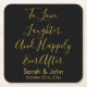 Black Gold Personalised Script Wedding Reception Square Paper Coaster