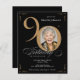 Black Gold Photo Budget 90th Birthday Invitation. And elegantly designed special birthday celebration invitation, featuring a custom photo of birthday person and script calligraphy with vintage flourish elements. Simple enough to fit a variety of themes and colours!