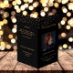 An elegant 4-page program. A black background, golden sparkles and space for your photo. Personalize and add name, dates and your text.