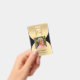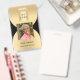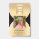 A black backgound with faux gold arch shapes. Black text. Add your business logo, a photo, name and title.
