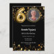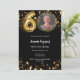 A modern, stylish photo invitation for a 60th birthday party. A classic black background, decorated with faux gold stars. Personalise and add your party details.