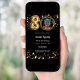 A modern, stylish photo invitation for a 80th birthday party. A classic black background, decorated with golden stars. Personalise and add your party details.