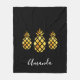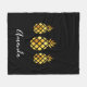 Black gold pineapples name script modern fleece blanket