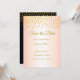 Elegant gold metallic look confetti on black and gold rose Save the Date Wedding Invitation Card. Luxury gold confetti on black and gold rose Save the Date cards.
