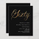 A modern, stylish invitation for a 60th birthday party for both him and her. Black background and the word Sixty written with large faux gold letters. Personalise and add a name and party details.