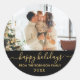 Black Gold Script Family Photo Happy Holidays Classic Round Sticker