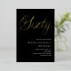A modern, stylish invitation for a 60th birthday party for both him and her. Black background and the word Sixty written with large faux gold letters. Personalise and add a name and party details.