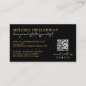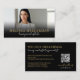 Professional Photo QR Code Company Horizontal Business Card. This sleek and simple horizontal business card is perfect for corporate brands, small businesses, consultants, freelancers, or any professional looking for a modern, elegant aesthetic. The front features your photo, name, and title or business name over a black gradient at the bottom, with gold and white fonts for a chic contrast. On the back, a solid black background is accented with gold and white fonts and details, with your contact information on the left and the QR code and optional social media icons placed at the bottom right. Typography is a refined mix of handwritten script calligraphy and a classic serif font, giving the design a professional yet stylish look. Fully customisable, you can adjust fonts, colours, and layout to suit your brand.