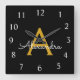 Black Gold Script Monogram Girly Name Square Wall Clock