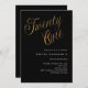 A modern, stylish invitation for a 21st birthday party. Classic black background and the word Twenty One written with elegant large script letters in faux gold. Personalise and add a name and party details.