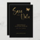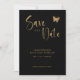 Black & Gold Script with Glitter Butterfly Wedding Save The Date