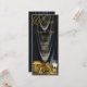 Womans black and gold birthday party menu and program with beautiful gold high heel shoes, gifts, perfume and champagne glasses on a pretty black satin background. These black and gold party menus or programs are easily customised with the text of your choice on the front and back in the font style you prefer. Menu can't be removed.