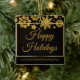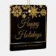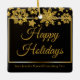 Chic corporate Christmas ornament with Happy Holidays written in elegant gold cursive script under a beautiful border of snowflakes falling on a modern black holiday label. Customise this professional holiday sticker with your company or business name.