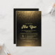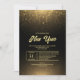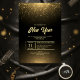 Celebrate the New Year in true style with this elegant black and gold party invitation. The design features a rich black background softly glowing with a golden light gradient from the top, decorated with shimmering gold star bursts, metallic confetti trails, and gentle spark details for a festive glow. The lower half includes editable text, perfectly balanced with a warm gold haze that highlights your party details beautifully. With its smooth watercolor-meets-metallic finish, this ultra-premium design is ideal for classy New Year’s Eve parties, dinner celebrations, or countdown events that deserve a touch of sparkle.
