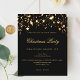 An invitation for a business, company Christmas Party. Classic black background. Decorated with golden stars. Personalise and add the details.