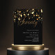 A modern, stylish invitation for a 70th birthday party for both him and her. Decorated with golden stars. Black background and the word Seventy written with large faux gold letters. Personalise and add a name and party details.