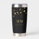 A black coloured background. Decorated with faux gold stars. Personalise and add your monogram initials and full name. Yellow letters.