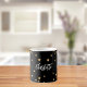 A black background decorated with golden stars. Personalise and add your name. The name is written with a modern hand lettered style script .