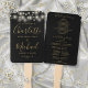 Black and gold signature script wedding program featuring pretty string lights and chic modern typography. This stylish wedding program can be personalized with your special wedding day information. Designed by Thisisnotme©