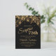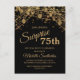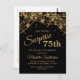 75th birthday party invitation for women with glittering gold string lights and sparkling bokeh on a bold black background. Because text is customisable, this invitation is designed for a lady who is celebrating any birthday. (18th, 21,st, 30th, 40th, 50th, 60th, 70th, 80th, 90th, 100th....or any age). Text, fonts and wording are completely customisable. Contact us for help with customisation or matching products.