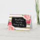 Black Gold Stripe Pink Floral Thanks Maid of Honor Thank You Card