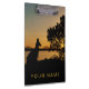 A beautiful black and gold clipboard with a gorgeous sunset image featuring (the outline of) a kangaroo, a tree and the world famous Glass House Mountains in Queensland, Australia. The spectacular golden sunset with the reflection in the water gives the image great colour. Perfect to get organised and keep your files together! Personalise it with your own name or text (or delete it if you just want to enjoy the stunning photo)!