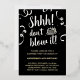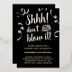 Looking for a fun and stylish way to invite your loved ones to your surprise birthday party? Look no further than our fun "Shhh! Don't Blow It!" invitation, featuring stylish gold foil script typography and a sleek black background, with playful confetti and a birthday cake. Perfect for anyone who wants to keep things fun and chic, this invitation is sure to get your guests excited for the big day.