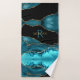 Black Gold & Teal Agate, Monogram & Gold Name Bath Towel Set