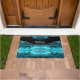 Black Gold & Teal Agate, White Monogram & Name Doormat