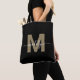 Black Gold Trendy Modern Script Name Monogram Tote Bag